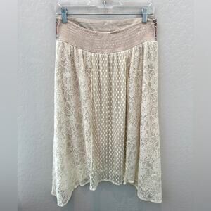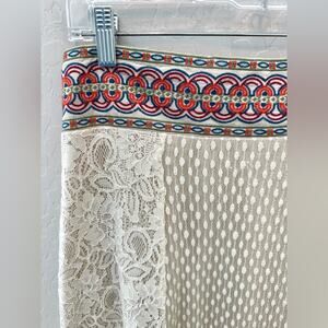 FLYING TOMATO | Cream Lace Skirt Boho Embroidered Waist | Size Large