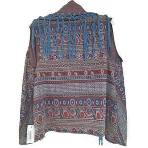 FLYING TOMATO Fringe Boho Sleeveless Open Cardigan New Mexico Nights Vest M