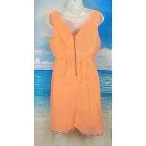 FLYING TOMATO Womans PEACH Dress LINED Zip Back TEAL Embroidered accent size 5