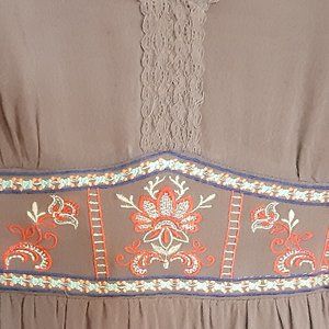 mid-tone taupe with orange and blue embroidery accnts
