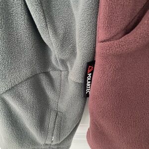 EUC jacket is very gently worn. It’s polar tech fleece longer length deep zip pockets for hand, warm burgundy, wine, and gray. What makes it great for bike riding or horse riding is the oversized hoodie to fully cover an equestrian helmet or bike helmet
