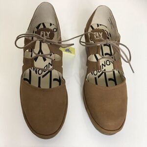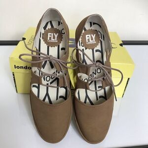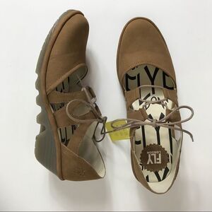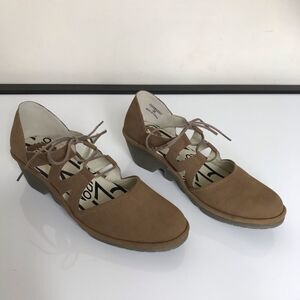 FLY London Leather Tie Wedges Phis Sand