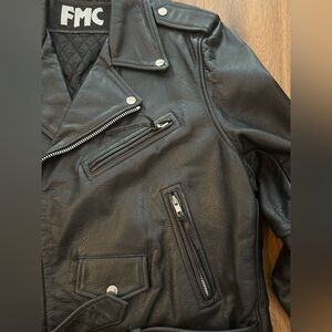 FMC Harley Davidson Black Leather Quilt Lined Zip Biker Jacket Womens XL Heart