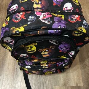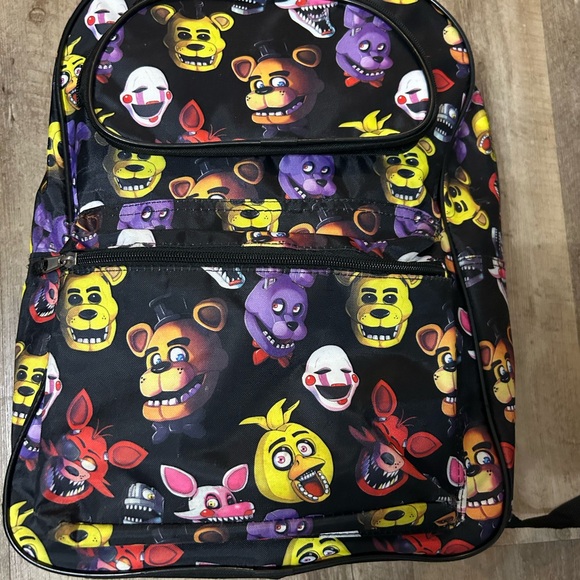 Colorful backpack with bold character designs. Ideal for fans of unique styles.