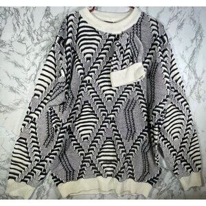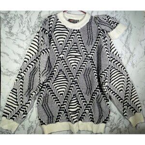 FNF 2000+ L Geometric Knit Sweater Black & White Acrylic Patterned with matching