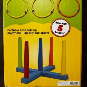 Enjoy a timeless toss game reimagined with a softer, safer design! This portable ring toss set is quick to assemble and can be used both indoors and outdoors. It comes with 6 lightweight foam rings that are quiet and easy to throw, along with a sturdy foam base featuring 5 colorful targets that stay upright during play.