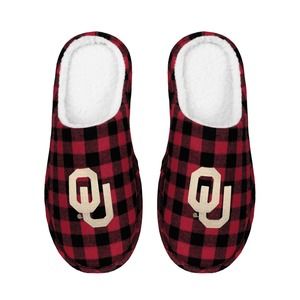 Stay cozy and comfortable while representing your favorite team with the FOCO Oklahoma Sherpa Lined Buffalo Check Memory Foam Slipper in Men's Medium size 9/10. These stylish slippers feature a classic buffalo check design lined with plush sherpa for extra warmth. The memory foam footbed provides superior cushioning, while the durable outsole ensures reliable traction indoors and outdoors. Perfect for lounging at home or showing team spirit on game days, these officially licensed slippers make a great gift for any Oklahoma fan.
