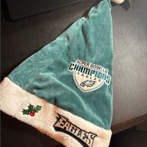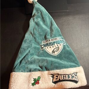Teal / Green Philadelphia Eagles Football Santa hat by FOCO. Features a white pom-pom