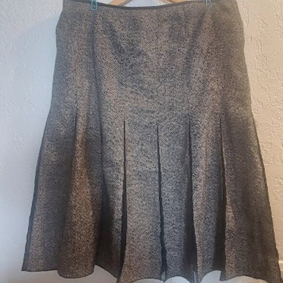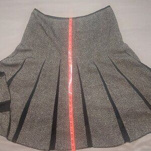 Elegant and flattering, fits around the hips and flairs out thru hem. Fully lined, back invisible zipper. Wool and polyester mix. Size 16, and in excellent and clean condition.