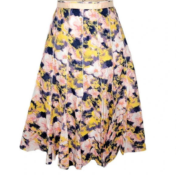 FOCUS 2000 Women's Floral Tie Dye Cotton Pleated Paneled Full Skirt Size 10 Pink