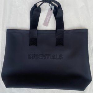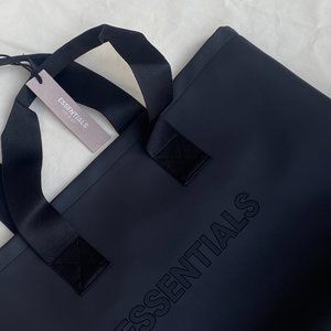 This tote bag from Fear of God ESSENTIALS is refined and sleek, as is typical of Jerry Lorenzo. It’s all-black — in keeping with the designer’s neutral aesthetic — and features tonal, block letter branding printed at the front.