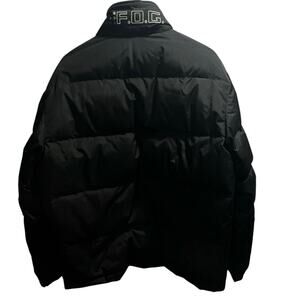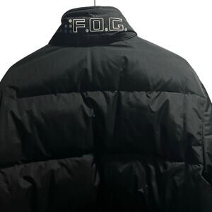 The jacket pictured is a black quilted down puffer jacket from F.O.G. by