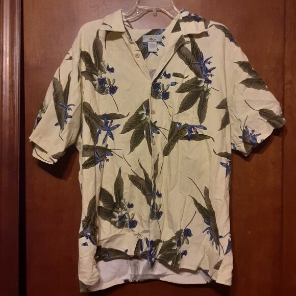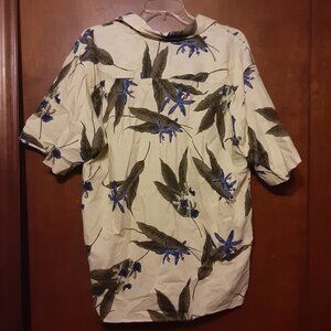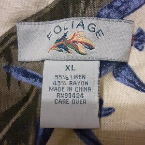 Foilage Mens Hawaiian shirt 55 percent Linen 45 percent Rayon. White w Leaves Print