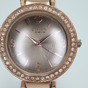 FOLIO Rose Gold Tone Womens Watch Gray Dial Bracelet Crystal Bezel w New Battery
