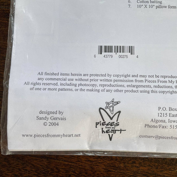 This pattern is uncut, new in packaging. Released in 2004 by Pieces from my Heart in Iowa.