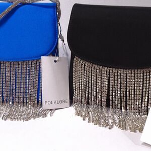 FOLKLORE VERONICA BEARD Fringe Loop Bag Black Clutch Shoulder Bag $57 BA…