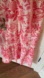 FOMO Italian brand long, light weight collared shirt dress with a pink and white floral pomegranate pattern, three-quarter length sleeves, a button-down front, and a matching patterned (reversible) belt with a large bamboo buckle. The dress also features a ruffled hem. Purchased at Wish and Shoes Cashiers North Carolina.