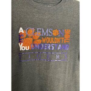 FOOT LOCKER WOMEN'S CLEMSON TIGERS GLITTER GRAPHIC SS TEE SHIRT SZ L