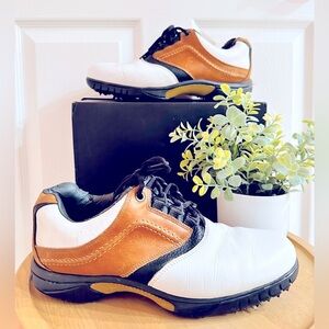 FOOTJOY ~ Contour Series men’s white and tan leather golf shoes size 10.5