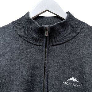 FOOTJOY Lined Wool Golf Sweater Mens Large Gray Zip Mockneck Stone Eagle