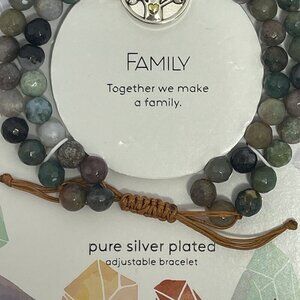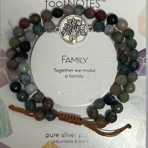 FOOTNOTES Silver Over Brass Adjustable Bracelet FAMILY OS Red Jasper Tree Charm
