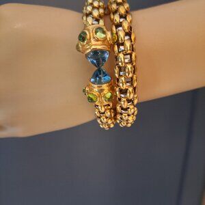 FOPE 18K White Yellow Gold Twist Snake Blue Green Cabochons VTG 1989 RARE