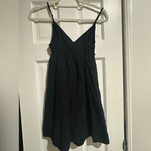 This chic black mini sundress by Wild Fable features a flattering v-neckline and delicate spaghetti straps, perfect for a cocktail night out. Its lightweight fabric and flowy silhouette offer a stylish and comfortable fit, making it a versatile addition to your wardrobe.
