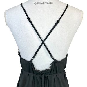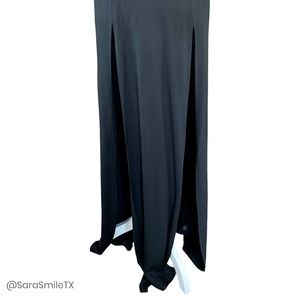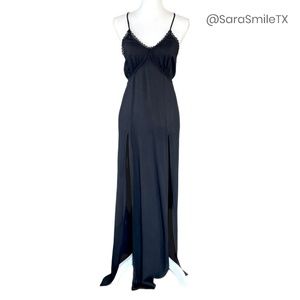 FOR LOVE & LEMONS boho black maxi dress with two high front slits. Crochet trim. Low, open back. Soft v-neck. Adjustable spaghetti straps criss cross at back. Tie at back. EXTREMELY RARE & HARD TO FIND!! Excellent used condition. No holes or stains. No fabric label. Measurements (approx/laying flat): 17“ bust, 19“ waist, 21“ hip, 60“ length. Size Small. Retail $297.