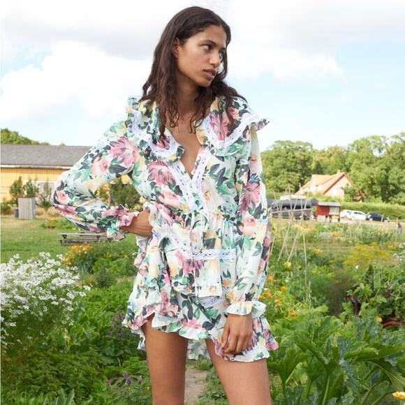 FOR LOVE AND LEMONS Floral Asymmetrical Dress
