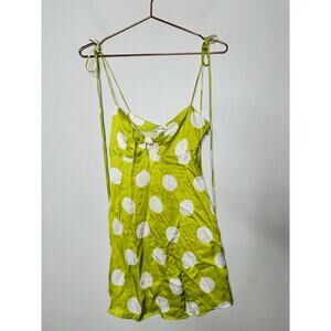 FOR LOVE AND LEMONS Green White Polka Dot Adira Mini Shift Dress Size Small