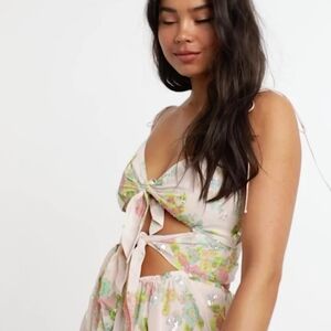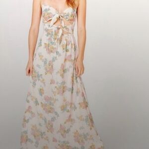 FOR LOVE AND LEMONS LOUISA DOUBLE TIE FRONT FLORAL SEQUIN MAXI DRESS SIZE LARGE