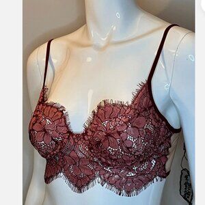 FOR LOVE AND LEMONS Loucette Lace Burgundy Red Underwire Bra M