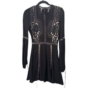 FOR LOVE AND LEMONS Penelope Boho Mini Dress Black Small