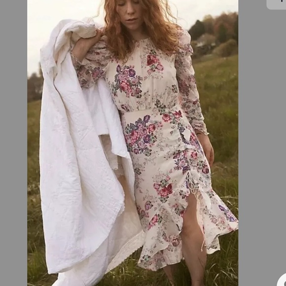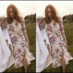 NWT FOR LOVE AND LEMONS ROSS RUCHED RUFFLE SLIT MIDI DRESS SIZE S 100% AUTHENTIC