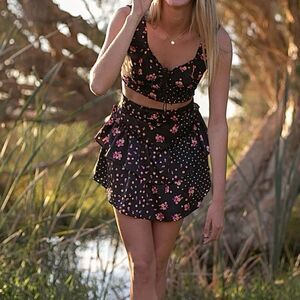 FOR LOVE AND LEMONS Skirt Camellia Belted Floral Skirt Size Large • NEW WITH TAG