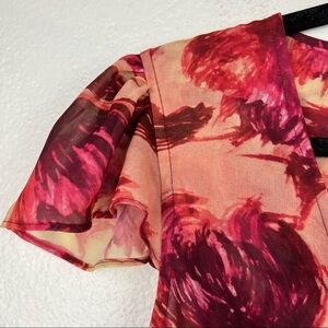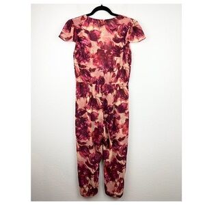 FOR LOVE AND LEMONS Sweet Jane Cropped Jumpsuit with Deep V Neckline, Red Floral Print, Size Small