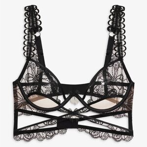 FOR LOVE AND LEMONS- swirly floral embroidered bra - Small - Black - nwot