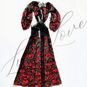 FOR LOVE & LEMONS Araceli Maxi Dress In Red Embroidered Floral NWT