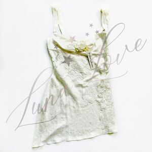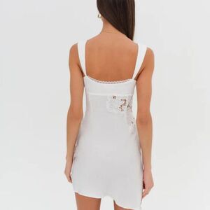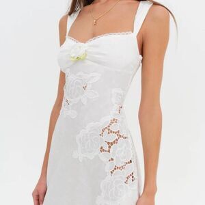 NWT! For Love & Lemons Claudia Mini Dress In White. Inspired by the eternally chic style of Italian muses, the Claudia white mini dress has timeless summer appeal. Cut to an asymmetrical silhouette with appliquéd embroidery and jacquard cut-away detailing.