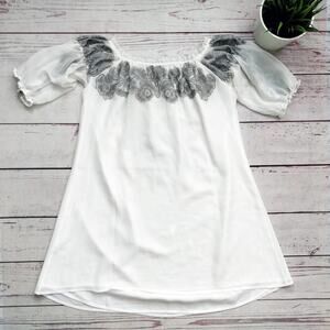 FOR LOVE & LEMONS Embroidered Off Shoulder Tunic Top Short Sleeve White, fits M