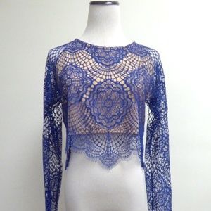 FOR LOVE & LEMONS Grace blue lace crop top new L