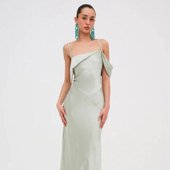NWT! For Love & Lemons Jewel Maxi Dress In Sage. Stunner in the color Sage. Gorgeous gown for any event! See photo 13, you will see a small blemish within the liner. This is inside the dress and does NOT show on the outside of the dress. This is on the liner of the bust area of the dress only. Please take to dry cleaner to treat if needed.