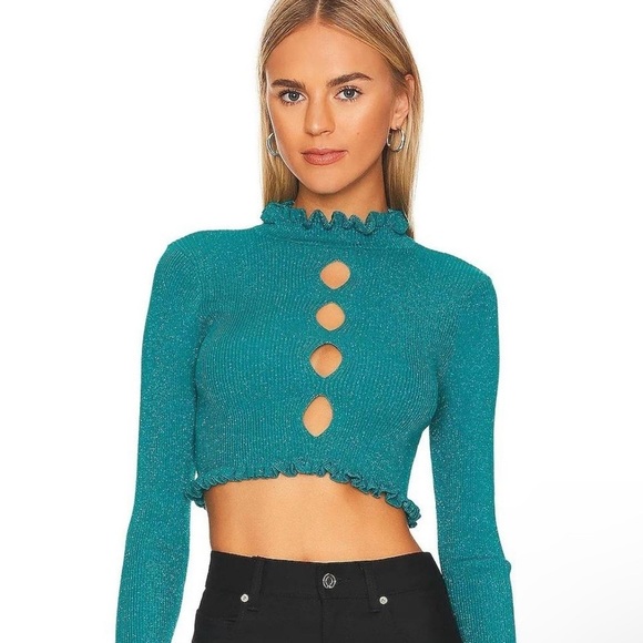 FOR LOVE & LEMONS Lorelei Cropped Sweater in Blue 2x