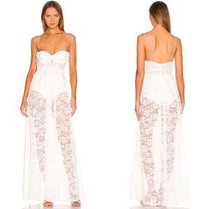 FOR LOVE & LEMONS Lorena Maxi Dress in White SMALL $275