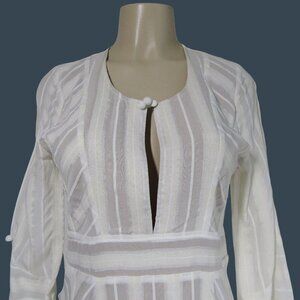 FOR LOVE & LEMONS M White Chevron Stripe Boho Mini Dress Neutral Coastal Sheer