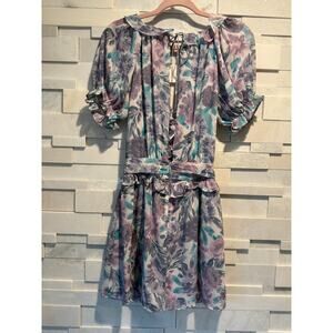 FOR LOVE & LEMONS NWT Shelly Neck Floral Lilac Ruffle Mini Dress Sexy Coquette S