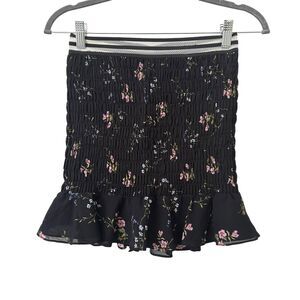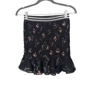 FOR LOVE & LEMONS Odette Smocked Silk Floral Mini Skirt Black Small