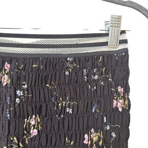 Black smocked mini skirt with floral print