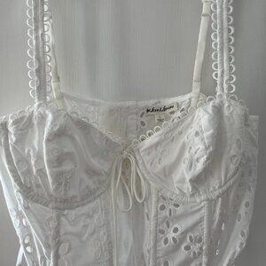 100% cotton, Made in India. Boned bodice with eyelet fabric.