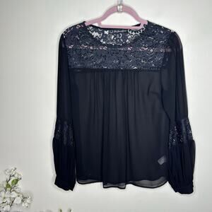 FOR LOVE & LEMONS Sacramento Lace Sheer Blouse Black {3J11}